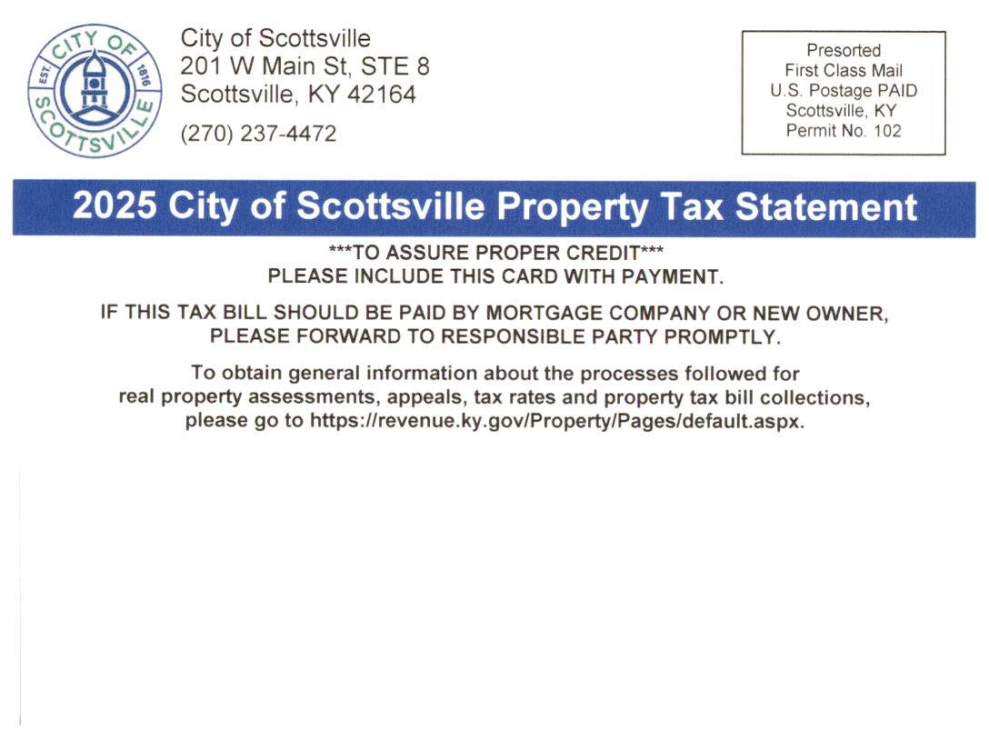 2025 City of Scottsville Property taxes were mailed on 10/1. The discount amount is due by December 15th.